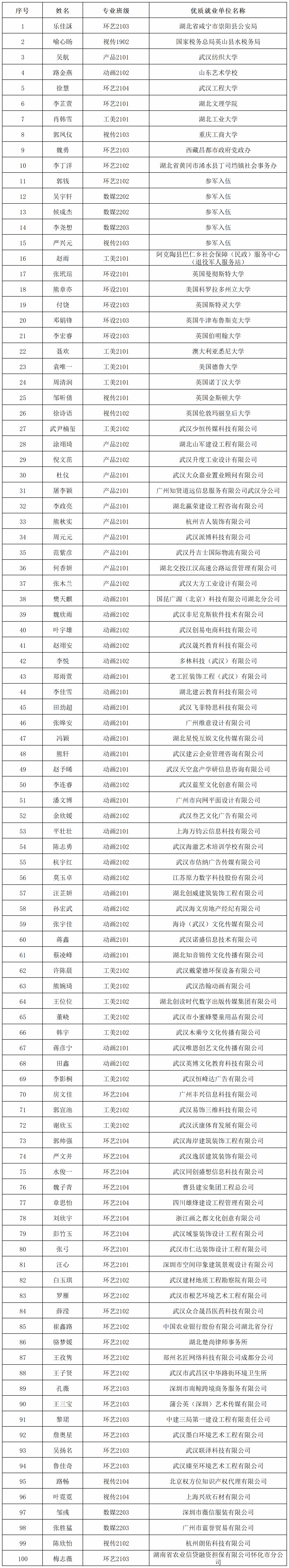 2025届毕业生优质就业统计一览表(部分)
