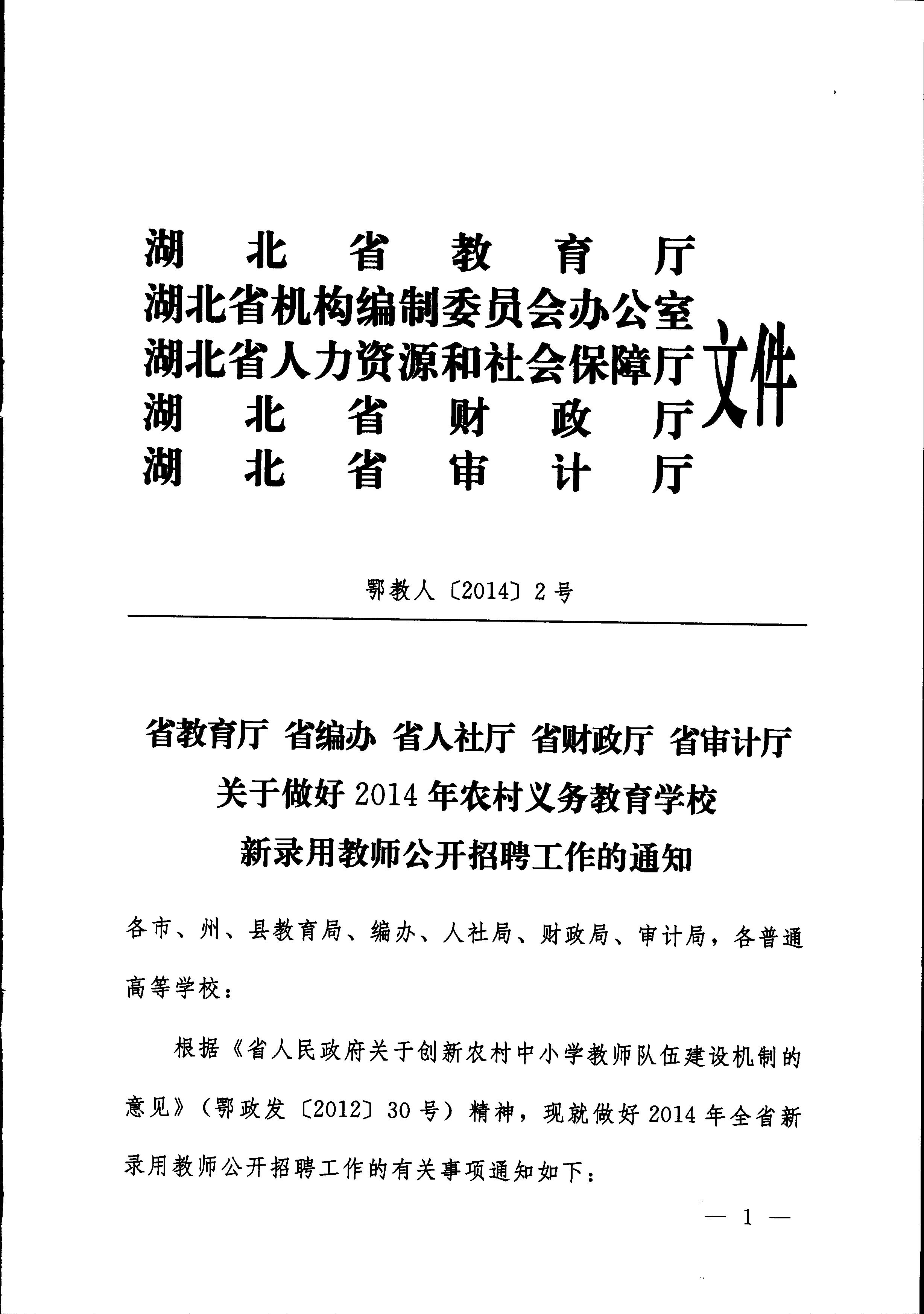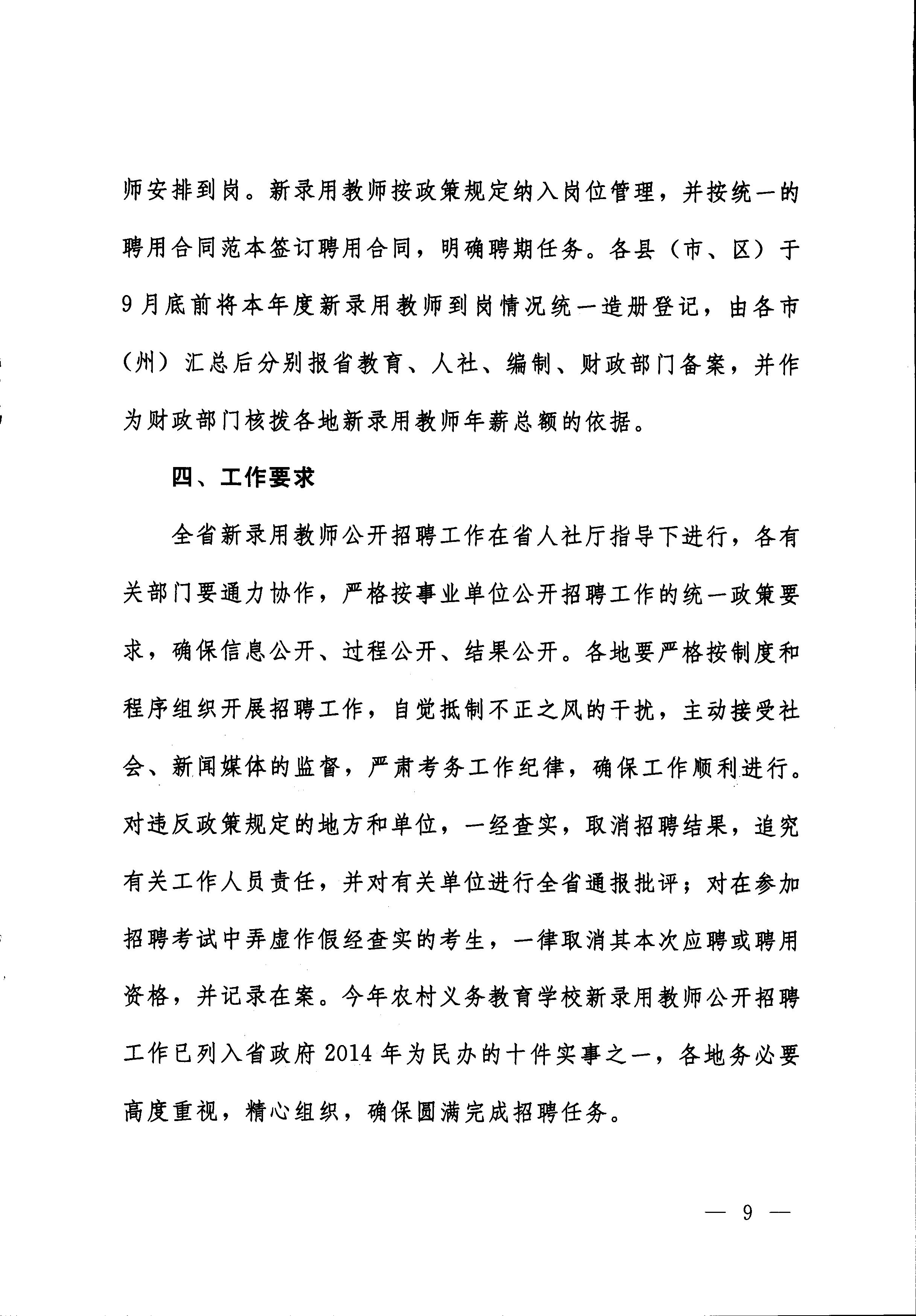 关于做好2014年农村义务教育学校新录用教师公开招聘工作的通知