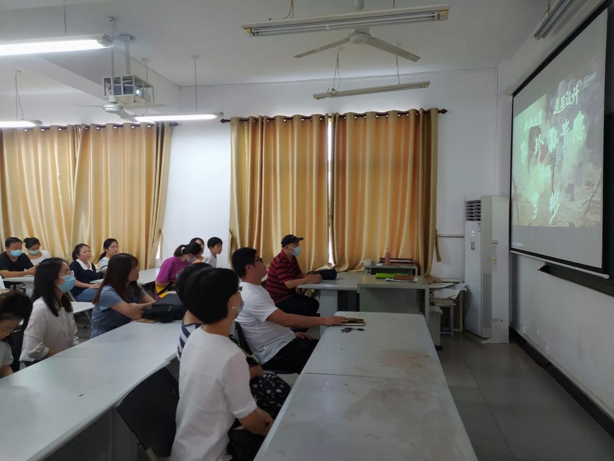 为庆祝中国共产党建党102周年,深入学习贯彻习近平新时代中国特色社会主义思想和党的十九大精神,引导广大党员干部重温历史,增进爱国情感,进一步加强理想信念,9月26日下午2时许,艺术设计学院教工第一、第二支部组织全体党员教师在艺506多媒体教室观看两部重大党史题材电影《开国大典》和《古田军号》。