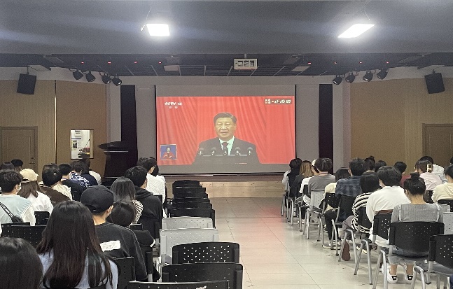 2022年10月16日上午十点,艺术设计学院党总支组织全体学生党员、积极分子于艺术522教室收看中国共产党第二十次全国代表大会开幕会。应疫情防控要求,全体学生佩戴口罩隔位就坐。本次大会主题高举中国特色社会主义伟大旗帜,全面贯彻新时代中国特色社会主义思想,弘扬伟大建党精神,自信自强、守正创新,踔厉奋发、勇毅前行,为全面建设社会主义现代化国家、全面推进中华民族伟大复兴而团结奋斗。