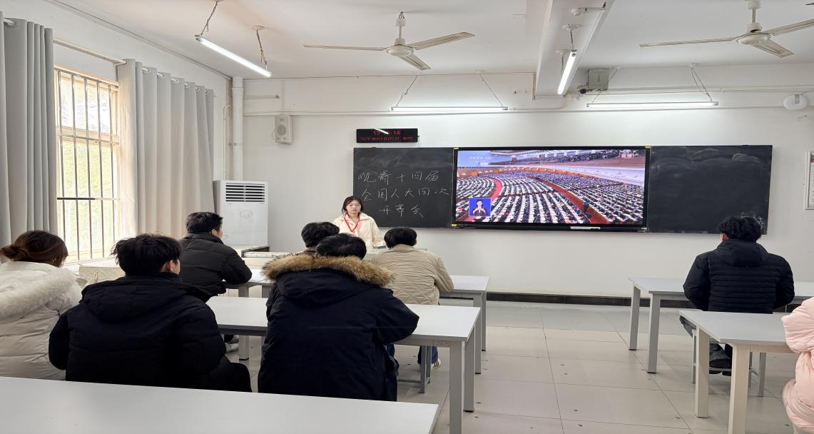 大会在雄壮的国歌声中开幕。观看过程中,全体学生精神饱满、坐姿端正,全程认真聆听、仔细记录,大家为报告中的精彩内容所鼓舞。大家聚焦过去一年发展成就回顾、“十五五”时期目标任务、本年度经济社会发展预期目标与重点工作部署,深刻领会报告中关于科技创新、民生保障、乡村振兴、绿色发展等重要论述,切实把思想和行动统一到党中央决策部署上来。