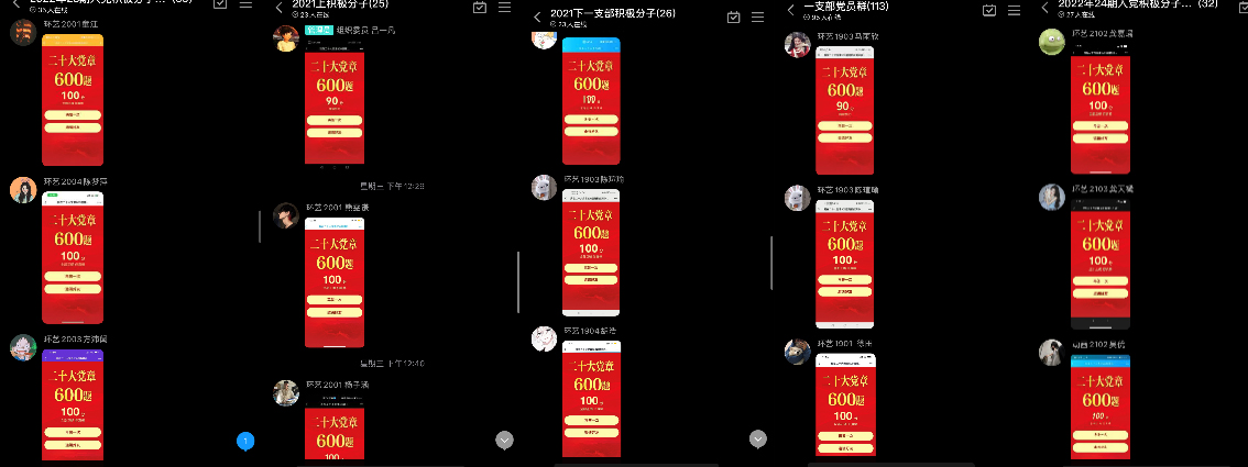 2022年11月16日,艺术设计学院学工一支部全体党员、预备党员、积极分子,参加线上“二十大党章600题随机测试”活动,此次活动主要目的是学习贯彻二十大党章,努力做一名合格的共产党员,活动由一支部陈梦老师主持,活动形式为线上随机测试,同志们做完后自行截图上传。