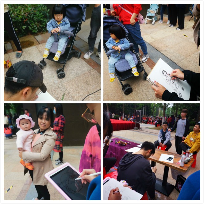 此次活动,艺术设计学院党总支借梅南山社区“奋斗百年路,启航新征程——庆祝建党100周年五一劳动节文艺演出”平台,联合社区党支部,在社区内设立创作与展览台,通过创作党史教育宣传海报、为群众简易人物画像、玉雕作品展览等形式,丰富党史学习教育形式,深化党史学习教育效果。