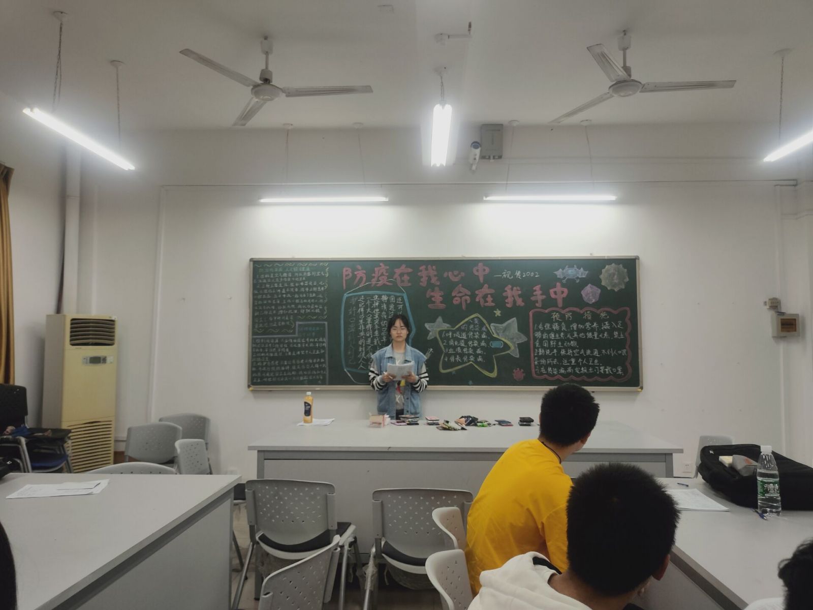 班会一开始,在班会上各个班委上台讲话,向同学们讲述自己的观点。班长黄治隆说:“这次的新型冠状肺炎传播能力极强,传播速度快,更可怕的是潜伏期时间长,即使在潜伏期也会被传染。一旦被传染,后果将非常严重。”其次是劳生委员林逸男也是很严肃的说:“所以各位同学出门时候,记得佩戴口罩,减少去人口密集的地方。随时保持手部卫生。减少接触公众触摸的物品、设施。与人交往距离三米远,教室要保持空气清新,常开窗户透气。少吃野味或少接触野生动物。”