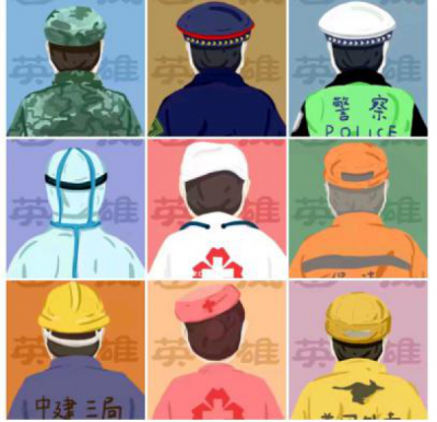在活动发布后,雏鹰圆梦团队的志愿者邹晨就连夜设计了一套名为《逆风英雄》的宣传作品,她认为在一线工作的医生、护士、警察等工作人员,面对疫情没有回退,而是迎面挑战,为我们全国人民铸就了一道道的防线,她觉得这些英雄们都十分的伟大。作为雏鹰圆梦志愿者的她,希望用自己的画笔为这些逆风英雄们加油鼓气。