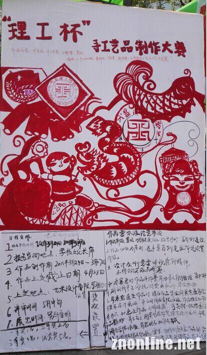 2015年“理工杯”手工艺品制作大赛于3月24日-3月27日在文化长廊设立报名点,由武昌理工学院艺术设计学院学生会女生部承办的“理工杯”手工艺品制作大赛正式开始报名啦!参赛者只要报名后,在3月24日-4月28日把作品上交至艺术设计学院学联办公室即可。承办部门会在5月中旬对参赛作品进行审核并公布名次。