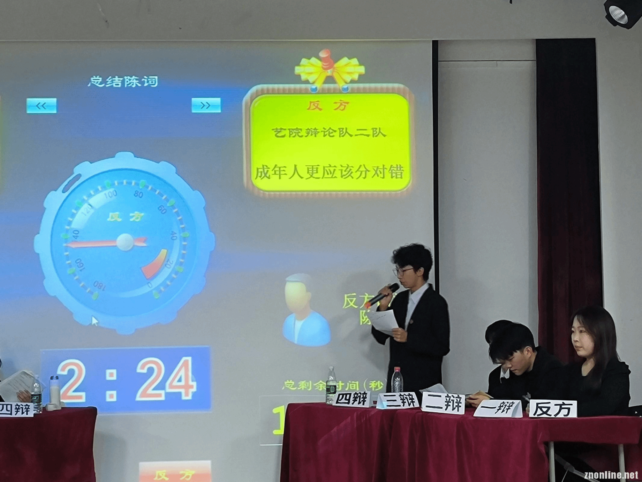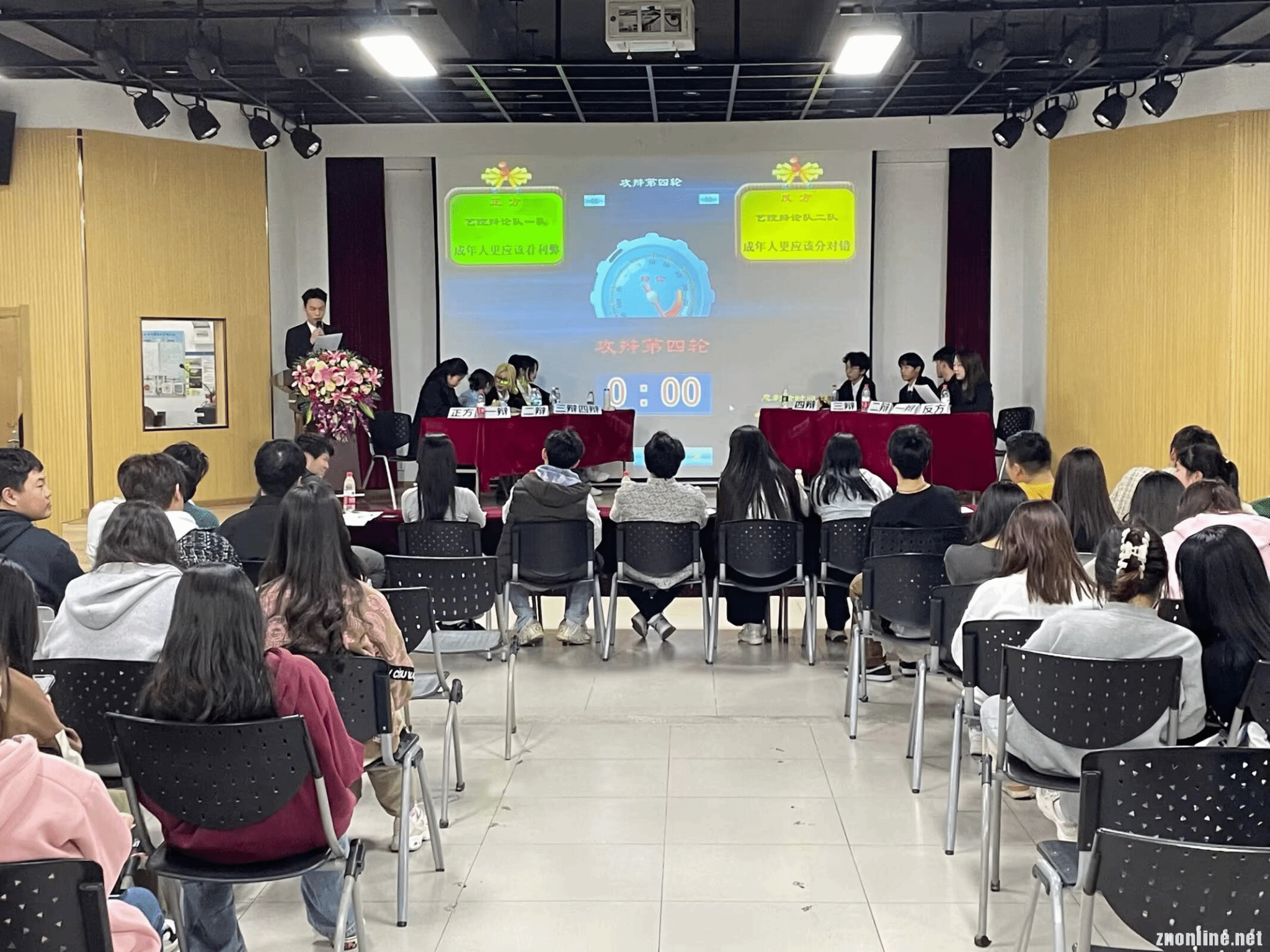 比赛进行过程中八位辩手旁征博引妙语连珠,结合理论与现实充分论证了成年人的利弊与对错关系,双方针锋相对互不相让,为同学们奉献了一场有理有据的精彩辩论。经过立论陈词、攻辩阶段、攻辩小结、自由辩和总结陈词五个环节紧紧相扣的论战,双方辩手均发挥出高水平的辩论能力,各位辩手魅力十足,条理清晰,有的放矢。正方一辩的先声夺人,正方四辩的从容不迫,反方二辩的理性思考,反方三辩的绝地反击,无一不让在场的观众拍案叫绝,给本次辩论赛留下精彩的一幕幕画面。