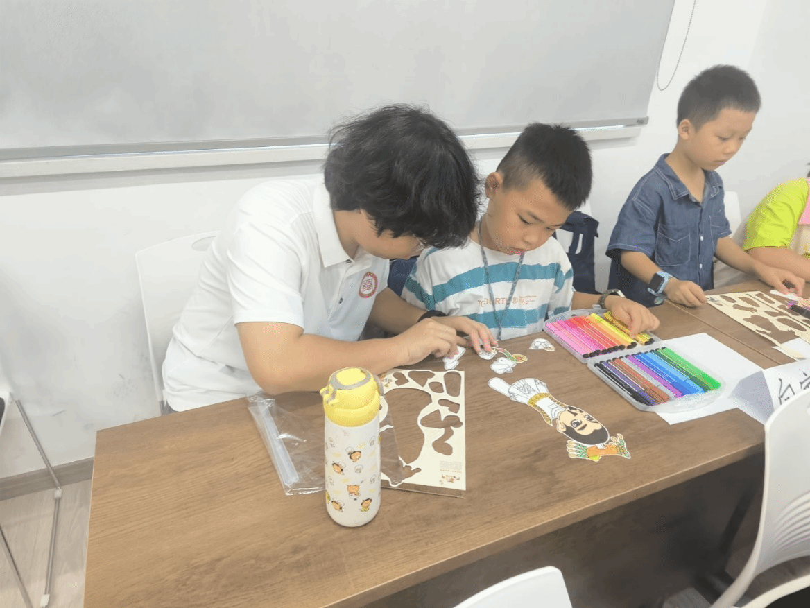 进入同学们最期待的动手制作环节。实践小队成员将准备好的皮影制作材料分发给青少年们,包括彩色卡纸、剪刀、铅笔等。成员们细心指导,从如何用铅笔在卡纸上勾勒出皮影人物的轮廓,到使用刻刀时的安全注意事项,再到如何用彩色笔为皮影上色,每一步都充满耐心与细致。