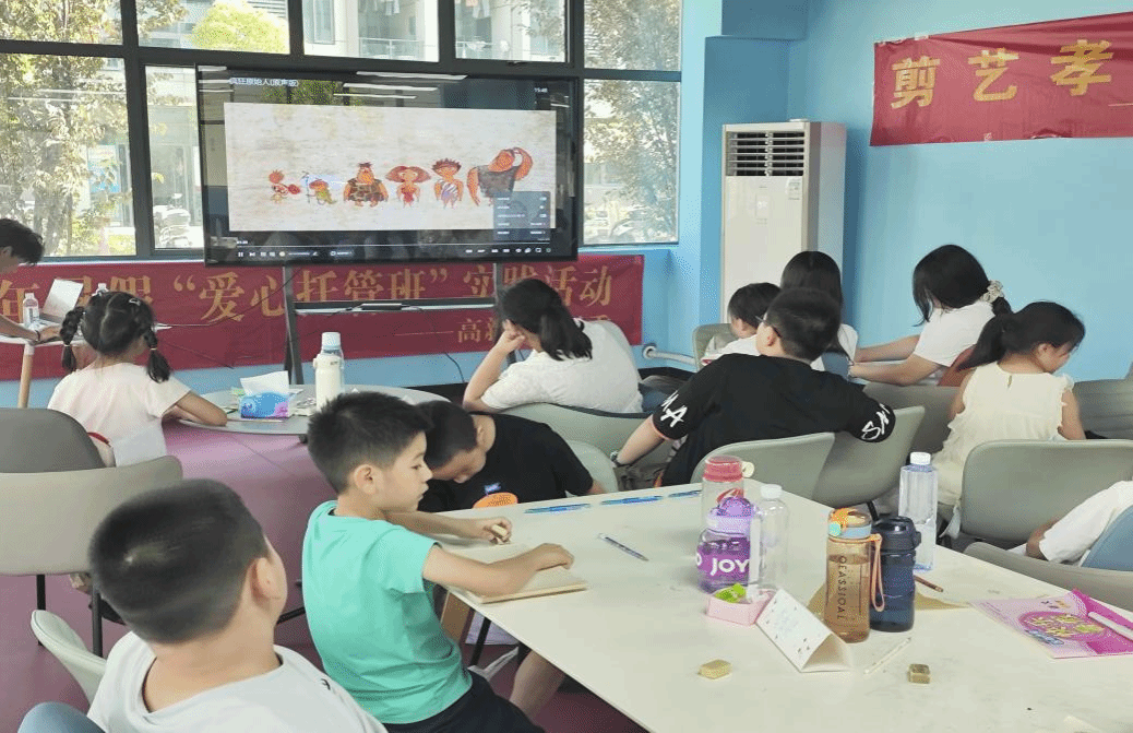 8月6日(通讯员 江伍轩 报道)当3D投影将《求鲤》中王祥卧冰的镜头与孩子们剪出的冰裂纹剪纸重叠,当《哪吒之魔童闹海》的动画帧与孝感雕花剪纸的镂空纹样在银幕交织,一场跨越千年的孝道对话在光影中徐徐展开。2025年8月6日,武昌理工学院创意设计学院"一纸剪出千年韵,文化传承心连心"团队的8名队员,于继剪纸教学课程后,再度联合孝感高新区孝天办事处,推出“剪艺孝天,美韵润情”孝道电影赏析课程。