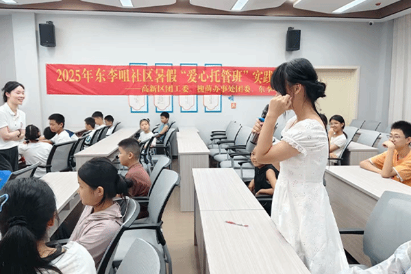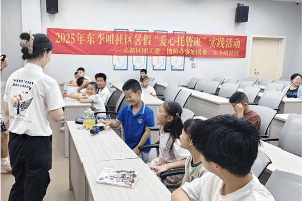 开营仪式上,社区活动中心的孩子们以热烈的掌声迎接团队的到来,一张张稚嫩的脸庞洋溢着期待。团队成员身着统一队服,精神抖擞、朝气蓬勃,与热情的小朋友打着招呼,帮助小朋友整理着桌面与着装,这一幕幕展现出新时代青年传承文化的责任与担当。