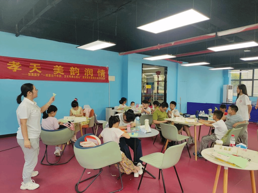 8月5日(通讯员 江伍轩 报道)红纸翻飞间,剪出“董永卖身葬父”的孝感故事;巧指流转处,绽放“福寿双全”的吉祥纹样。武昌理工学院创意设计学院"一纸剪出千年韵,文化传承心连心"团队的8名队员,8月5日于孝感市孝天办事处青年职工之家活动中心进行“剪艺孝天,美韵润情”主题剪纸教学课程,让同学在红纸与剪刀的邂逅中,触摸传统文化的温度,涵养感恩向善的情怀。
