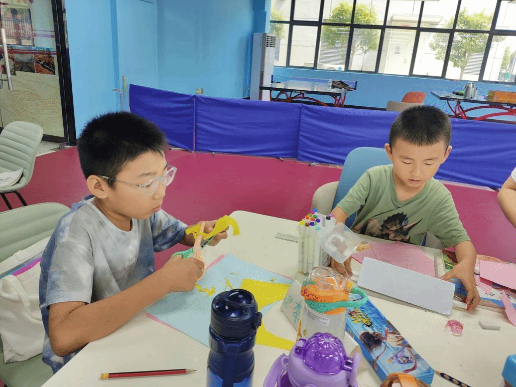 8岁的朱新增在作品《奶奶的蒲扇》中,用锯齿纹表现扇面的编织纹理,用月牙纹勾勒祖孙相视而笑的眉眼。“奶奶总在夏夜为我扇风,我要把这个样子剪下来永远记住。”她的作品被选为优秀范例,在课程成果展中引发诸多家庭共鸣。这种“技艺传授—情感投射—文化认同”的递进式教学,正是团队践行“以美育人、以文化人”理念的生动实践。