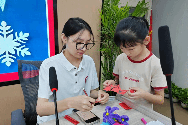 课程结束后,孩子们小心翼翼地将作品放进纸袋,有孩子说要回家教家人剪五角星。阳光透过窗户照在红色的剪纸上,那些镂空的图案仿佛成了连接传统与未来的窗口。团队成员刘瑞霞所说道:“今天孩子们剪出的是图案,明天他们心中会长出的是担当。这堂剪纸课,是给孩子的精神‘打底色’,让红色基因与文化自信在他们心里扎下根。”