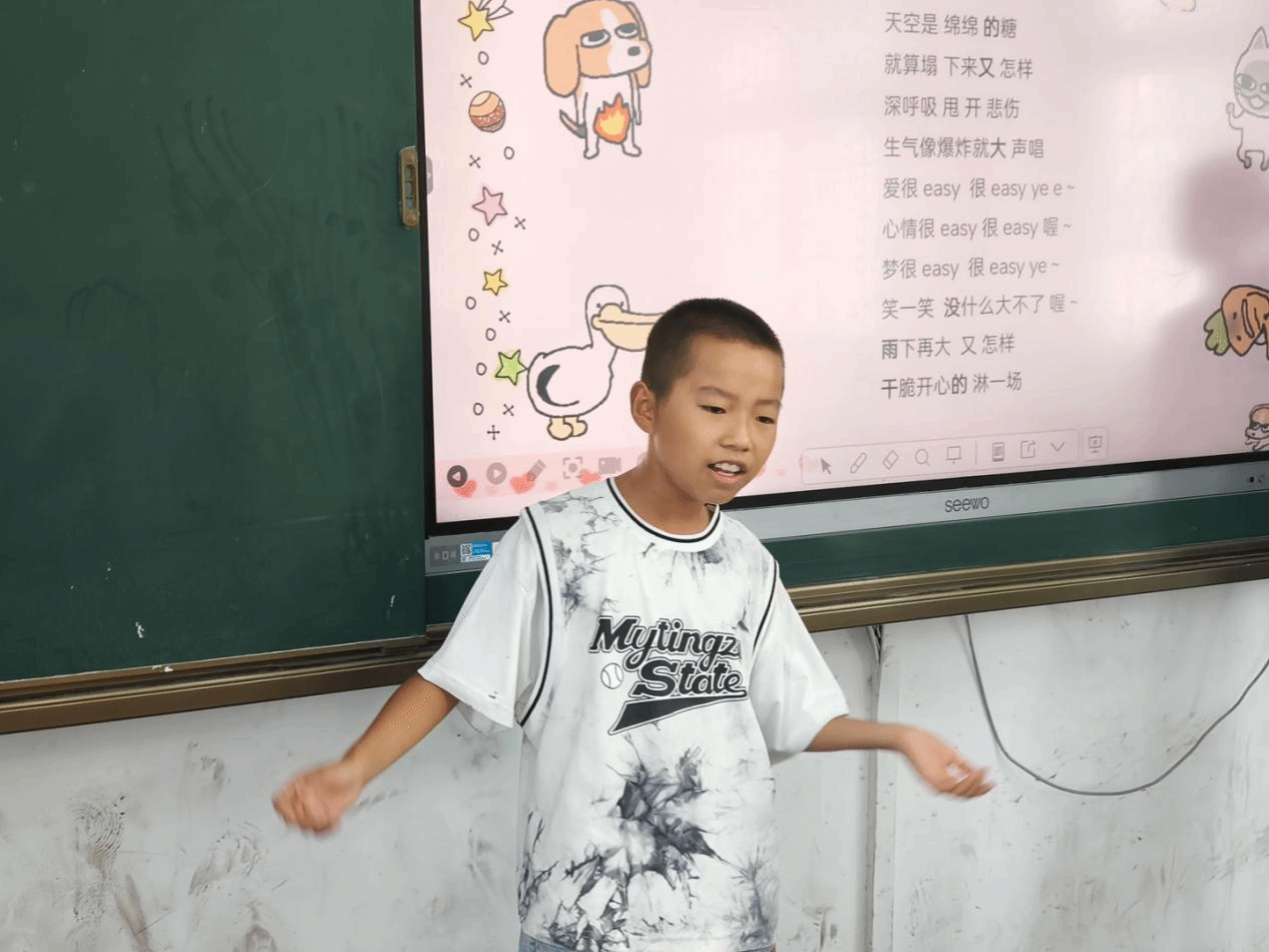 徐子学小朋友平时性格内向,但在这次课程中却表现得格外积极。他不仅主动举手要求领唱,还帮助其他同学纠正动作。“这首歌让我觉得特别有力量,好像所有烦恼都消失了。”这是徐子学小朋友课后的感受。活动结束时,孩子们站在教室中央,用嘹亮的歌声和优美的手势舞展示了学习成果。