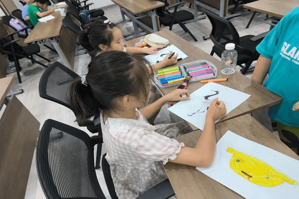 课程伊始,美育教育小队成员向同学们发放了画有动物水墨轮廓的画纸,让大家发挥想象力,为这些动物填色绘画。孩子们拿到画纸后,兴致勃勃地挑选彩笔,认真勾勒色彩。有的孩子将熊猫涂成了黑白相间的可爱模样,有的把仙鹤绘成了优雅的蓝白色。绘画过程中,小队成员穿梭在教室,耐心指导,鼓励孩子们大胆创作。
