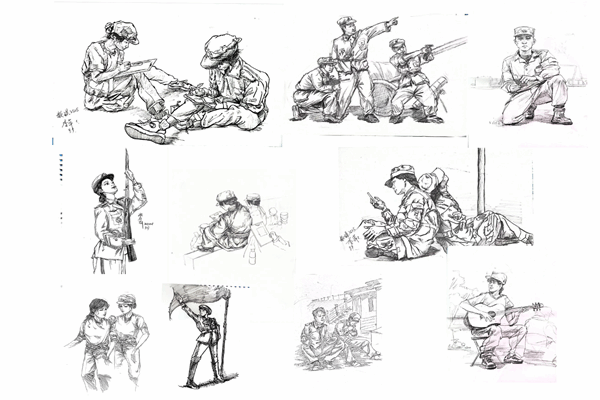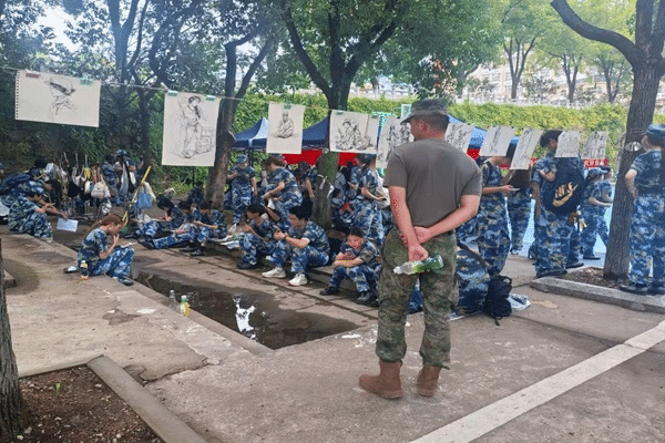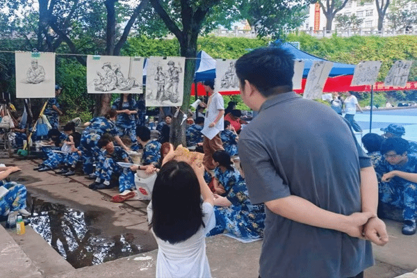 “观训时能更静下心观察细节,比如战友咬牙坚持的神情,这些真实的情绪是画室里画不到的。”观训的学生将画挂在展览绳上已攒下十余幅速写,从整理着装的瞬间到休息时递水的画面,每幅都透着真实的感动。