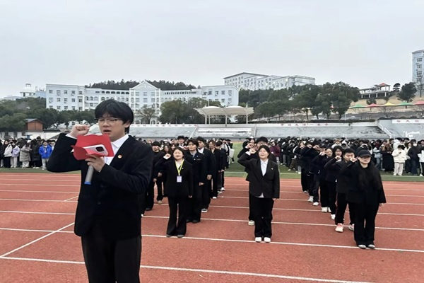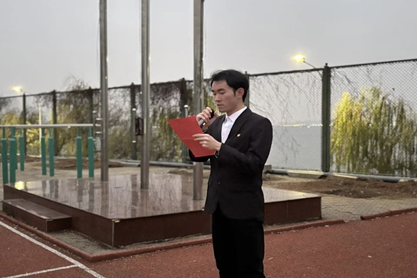 晨光熹微中,国旗护卫队迈着整齐的步伐护卫国旗入场,全场师生肃立。伴随着雄壮的《义勇军进行曲》,五星红旗冉冉升起,师生们行注目礼,现场氛围庄严而肃穆。仪式上,优秀学生代表冯浩发表讲话,结合专业学习与校园实践,分享了新时代青年如何将红色基因转化为奋进动力的思考;邱岳国带来的主题微团课,以红色经典案例为切入点,深入解读了青年一代的使命与担当,让在场学子深受启发。随后,在团员代表许锦浩的领誓下,25级团员青年高举右拳,重温入团誓词,铮铮誓言在运动场上久久回荡,彰显着青年团员不忘初心、砥砺前行的决心。最后,全体师生齐唱团歌,激昂的旋律为本次仪式增添了浓厚的青春色彩。
