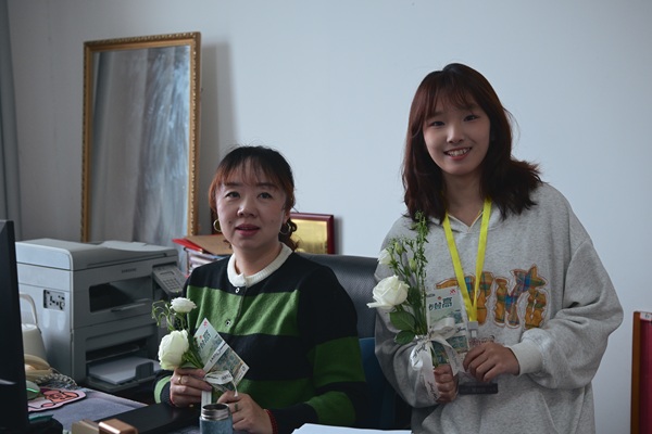 活动的顺利开展,离不开幕后学生志愿者的辛勤付出。在活动主场地,几位女大学生志愿者坚守岗位,她们分工协作,有的负责引导参与流程,有的负责发放鲜花和刮刮乐,用细致的服务、青春的活力,保障了活动的有序进行,成为节日里一道靓丽的风景线。
