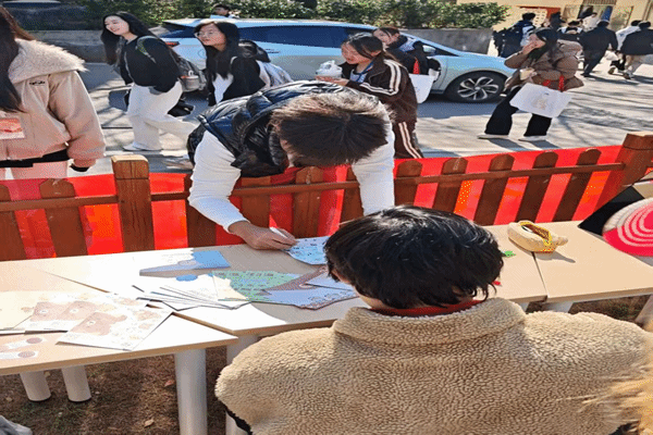 大家纷纷驻足停留,或低头沉思,或提笔疾书,将平日里未曾宣之于口的感谢诉诸笔端:有人在便签上写下对家人的牵挂,字里行间满是“愿岁月善待爱我的人”的真挚期盼;有人在信纸上细细描摹对师长的敬意,回忆起课堂上的谆谆教诲与迷茫时的悉心指引,笔触间满是崇敬与感恩;还有人认真记录下与同窗的点滴情谊,那些一起熬夜赶作业、并肩备战考试、分享喜怒哀乐的瞬间,都化作文字里最珍贵的回忆。一张张小巧的便签、一封封沉甸甸的书信,或被小心翼翼地贴在主题展示墙上,或被折叠成精致的形状留存心间,不仅是同学们情感的真挚流露,更成为校园里传递温暖与善意的“心意载体”,让感恩的氛围在彼此之间悄然蔓延。