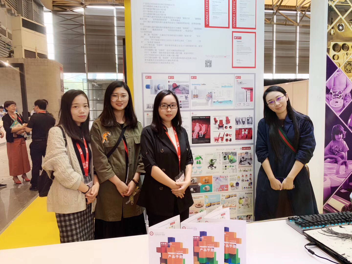 艺术设计学院产品设计系四位教师在展台合影