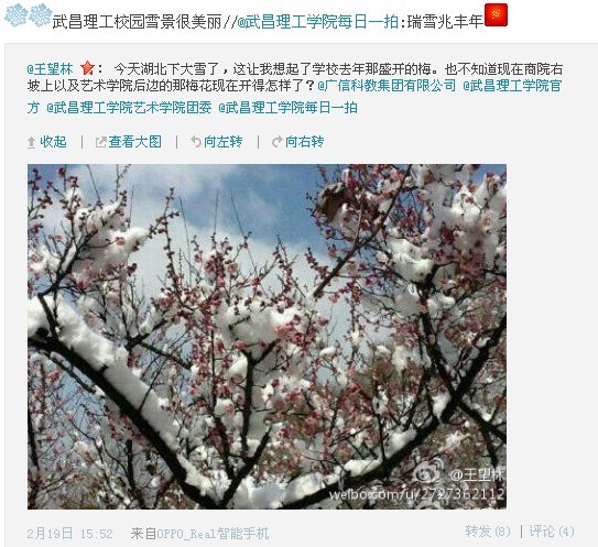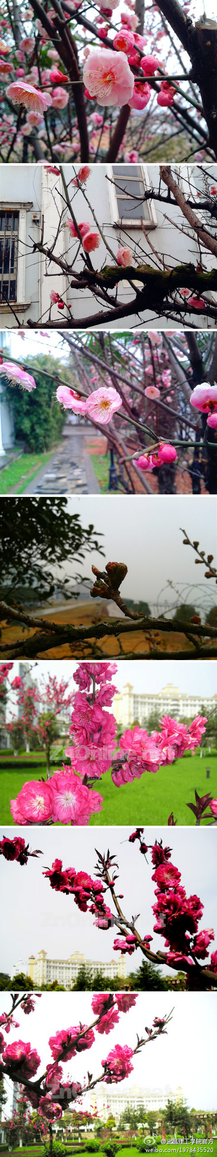 春天即将来临,花儿枝头春意闹,记者在武昌理工学院看到,梅楠山麓、汤逊湖畔的武昌理工校园勃勃生机,梅花、樱桃花等已经悄然开放,甚是美丽。一些提前回校的学生高兴地表示,现在春天在学校里漫步,感觉就在公园,景色真是太美了。(部分图片为许章磊拍摄,后三张图片为资料图)
