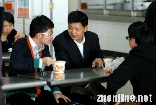 在第四学生食堂,蔡民族书记详细了解了食堂卫生、安全状况和饭菜价格,询问了学校对食堂的补贴和各项优惠政策情况,并与在食堂进餐的两位学生亲切交谈,向他们了解了学生消费水平、学生对食堂的满意度等问题。