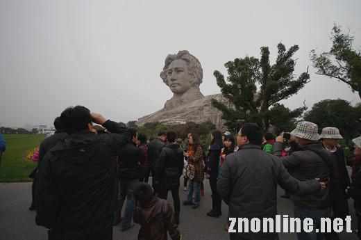 在橘子洲头,在毛主席曾经指点过江山的地方,大家触景生情,心潮澎湃,看到湘江北去、大地一片葱郁繁荣的景象时,党员干部们都深有感触,感受到改革开放三十年来的巨大变化,深切缅怀毛泽东同志的丰功伟绩,接受革命传统教育。在望江亭以北全世界最高的青年毛泽东雕像旁,党员们深情瞻仰,深切缅怀当年“风华正茂,书生意气,指点江山,激扬文字”的一代伟人毛主席伟人。