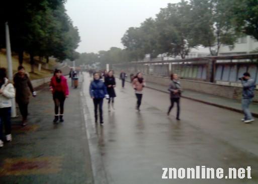 “老师加油!老师加油!”路两边站满了加油的同学。看到参赛老师即将到来,志愿者们立刻捧着热茶送到他们手中,活动中到处充满了温馨和感动。