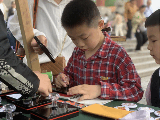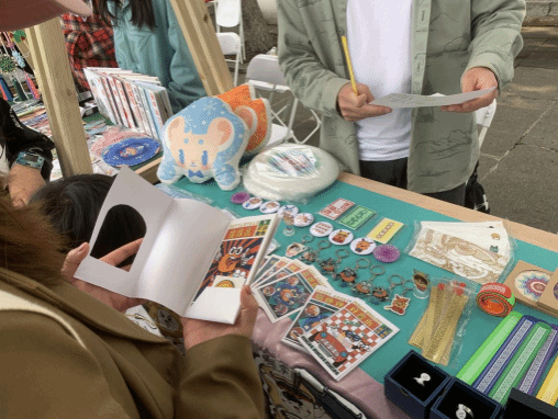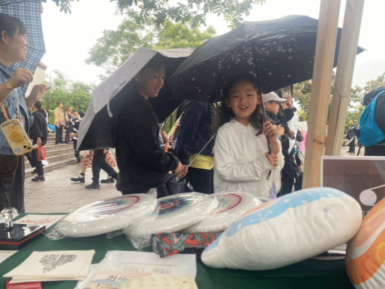 视传系朱丹阳老师、董紫阳老师和程萍老师带队前往黄鹤楼公园,本次文创市集挑选的文创作品来自艺术设计学院文创设计研发中心、视觉传达设计专业直属社团-原动力创意协会,引来了不同年龄段的游客驻足打卡。