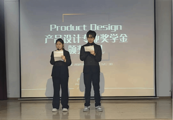 在颁奖典礼开始,主持人详细介绍了奖学金设立的初衷在于激励学生在设计领域积极创新与实践,推动产品设计领域人才培养;同时,评选细则全面涵盖学术成绩、创新实践能力及综合素质评价等多方面要求,奖学金申请细则由产品设计创新协会公众号公示,确保评选过程公平公正、科学合理。创意设计学院产品设计专业对培养高素质设计人才始终怀抱着坚定的决心与殷切的期望。