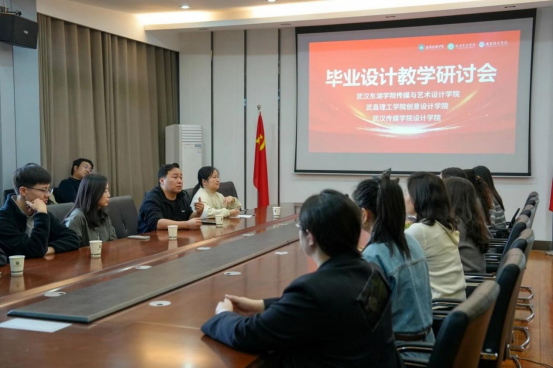 专题研讨会由王芳教授主持。会上,三所院校的教师代表围绕“视觉传达设计毕业设计的选题深度与时代性”、“实践教学与创新能力培养的路径”、“跨学科合作在毕设中的实现机制”以及“毕业设计质量控制与评价体系优化”等核心议题,展开了坦诚而深入的分享与讨论。我院视觉传达设计系教师代表胡飞扬、杨梦姗两位老师,介绍了武昌理工学院在应用型人才培养导向下,毕业设计教学强调产教融合、服务地方的特点,同时也积极学习了东湖学院、武汉传媒学院在项目制教学、学术前沿引领及国际化视野培养等方面的有益经验。会议氛围热烈,各方在思维碰撞中激发了诸多教学新思路。