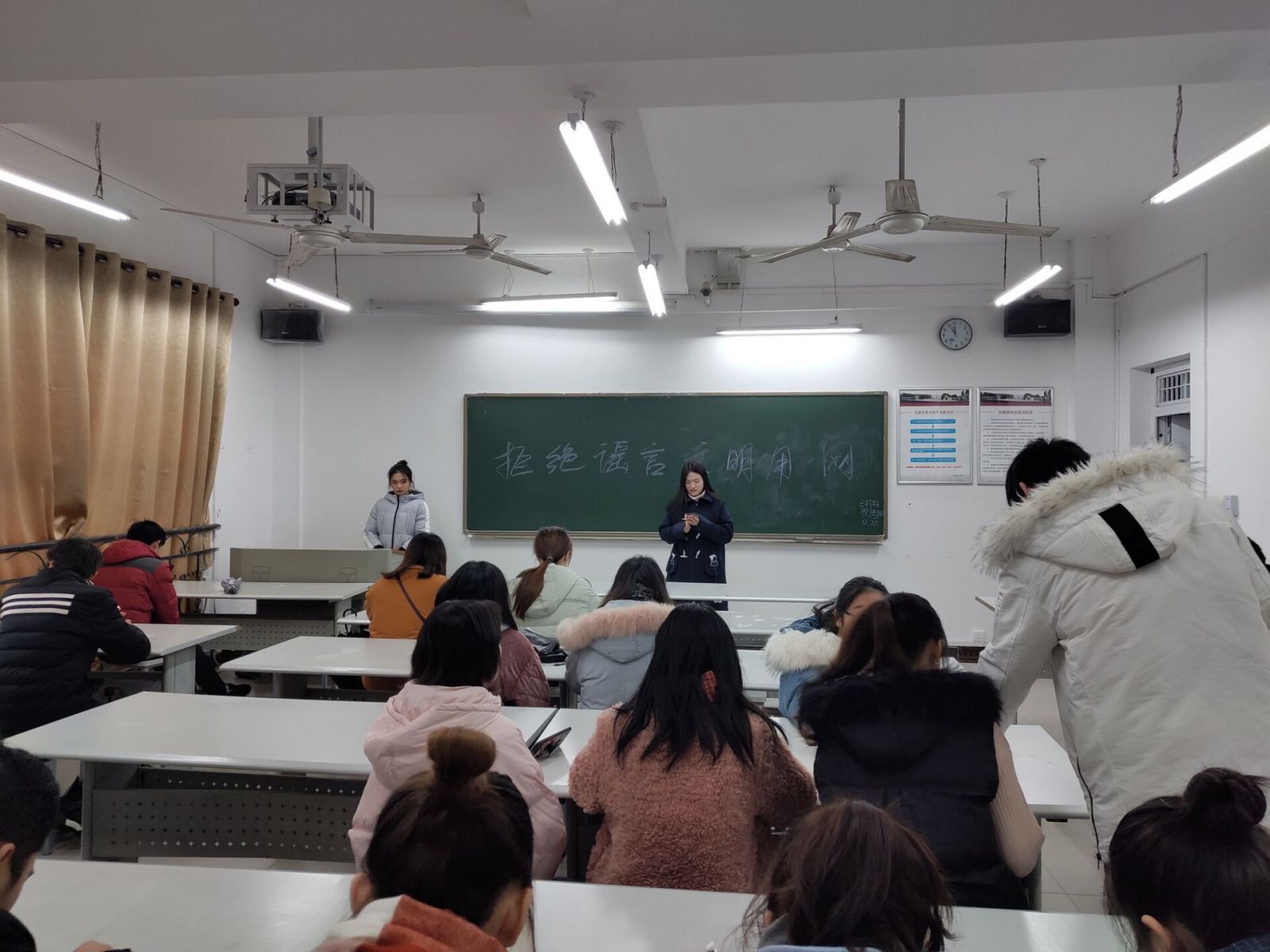 为促进新时代大学生网络文明行为教育建设,创建文明网络平台,引导大学生正确认识互联网,积极参与网络空间清朗行动,积极传递正能量,艺术设计学院2017级学生近日于艺术设计学院各教室开展“拒绝谣言、文明用网”主题教育活动。
