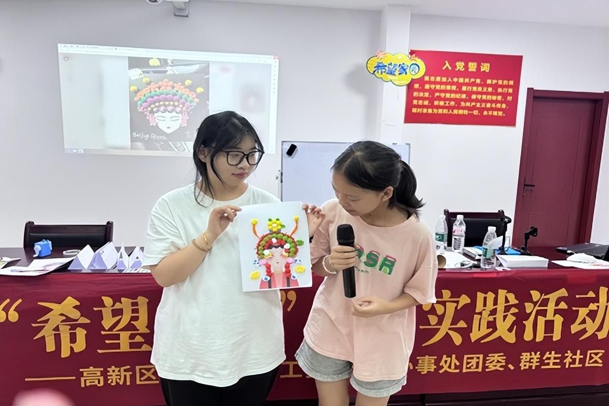 7月22日消息(通讯员 董政涛 报道)戏曲是中国的国粹,而头冠作为戏曲艺术的重要服装之一,蕴含着丰富的文化内涵和审美价值。为了让孩子们能够更直观地感受和理解这一传统文化,武昌理工学院艺术设计学院“雏鹰圆梦”——“一纸剪出千年韵,文化传承心连心”美育教育暑期社会实践团队,联合群生社区“希望家园”社会实践项目联合开展了一堂手工制作戏曲头冠课程。在这堂课上,孩子们不仅能够学到如何制作精美的头冠,还让孩子们深入了解中华优秀传统文化,还通过动手实践,增强了孩子们对传统艺术的认识与爱好。