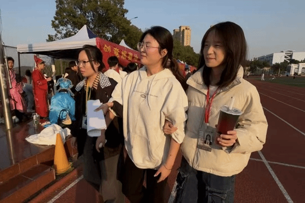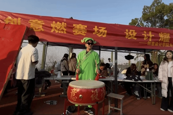 在创意设计学院的大本营前,一面大鼓成为了赛场的“活力符号”。团学成员们轮番上阵,敲响大鼓,激昂的鼓点与赛场的呐喊声交织,点燃了整个赛场的热情,为运动员们的拼搏助威呐喊。当运动员们在赛场上拼尽全力后,团学成员与志愿者们第一时间上前,小心翼翼地搀扶着他们用细致的关怀为运动员们驱散疲惫。