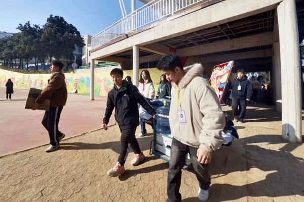 清晨7时,天刚破晓,创意设计学院的团学们已集结完毕。他们齐心协力,从学院搬运棚子、运动会绘板等物资前往东区大操场。那些绘板色彩斑斓、创意十足,是学院学子艺术灵感的结晶,为赛场增添了独特的艺术氛围。志愿者们小心翼翼地安置每一件物资,在晨光中勾勒出忙碌而有序的身影,为运动会的顺利开展筑牢了“后勤堡垒”。