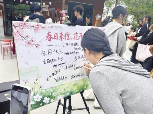 (通讯员 颜锦涛 报道)春风拂面,暖意融融。为进一步营造温馨和谐的校园氛围,传递学校对师生的关怀,增强师生的归属感与幸福感,武昌理工学院创意设计学院于4月20日在西区一站式学生社区服务站举办了以“春日来信,花开如期”为主题的师生集体生日会,师生代表齐聚一堂,共赴这场春日里的温暖之约。